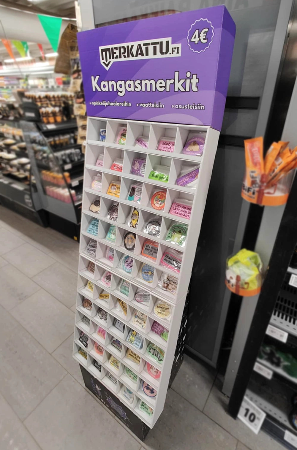 Merkatun kangasmerkkejä on saatavilla lähikaupoista ympäri Suomen! Tsekkaa sun lähimmät jälleenmyyjät ja käy tutustumassa kauppojen ympäri vuoden päivittyvään merkkivalikoimaan!